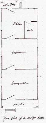 - Layout Illustration of a traditional shotgun house. Copyright: Public Domain